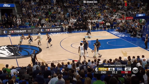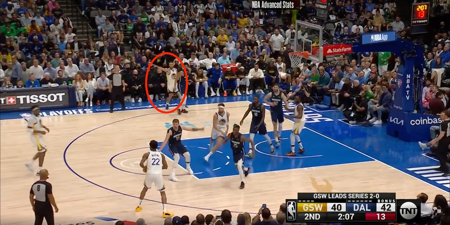 No team cuts more frequently than the Warriors per NBA Advanced Stats.1 That’s another reason why the Warriors are so well primed to take advantage of defensive weak spots like Luka Doncic. With Luka dawdling into no man’s land, Andrew Wiggins has all the space in the world to provide the rolling Kevon Looney with an outlet: