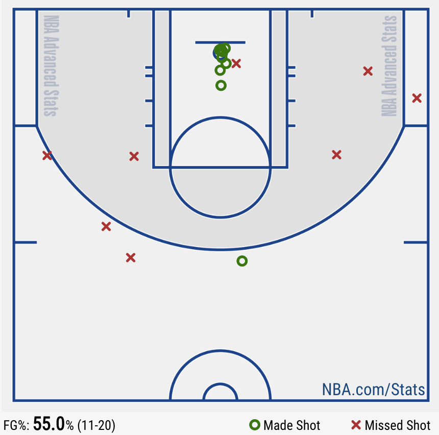 In the 2021-22 regular season, Wiggins cut on a career-high number of possessions, a number that has bumped up further in these playoffs. Wiggins’ offensive evolution presents an interesting case study in how a player can both be their true selves and fit within the Warriors’ system. Wiggins still like the mid-range (as he has joked), albeit a little less than in his early Minnesota years. A smaller percentage of his shots come at the rim, but he is making a career-high 72% of his rim attempts per CTG. Here’s his shot chart from Game 3: